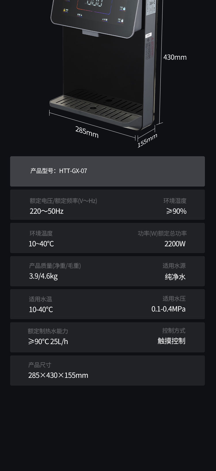 產品尺寸:285*430*155mm (含接水盒)