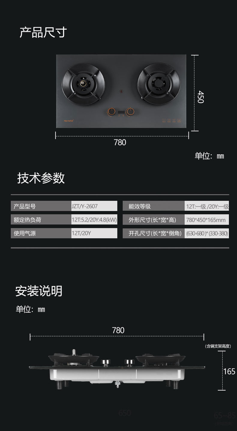 外形尺寸(長*深*高mm):780×450×165