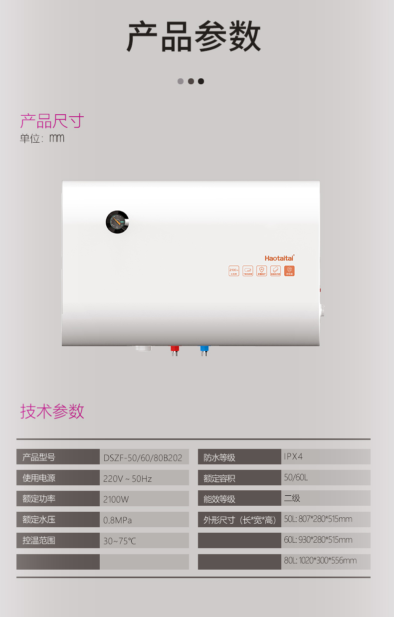 額定容量(L):50/60/80